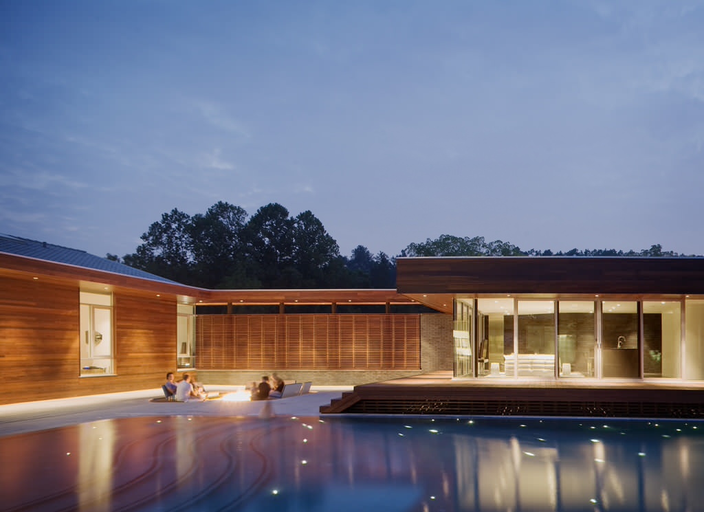 This house has been carved into the site’s topography. The hidden light source recalls both the weight of the surrounding earth and the change in elevation from one side to the other. It’s a complex house that never reveals itself all at once, and the light source complements that idea.