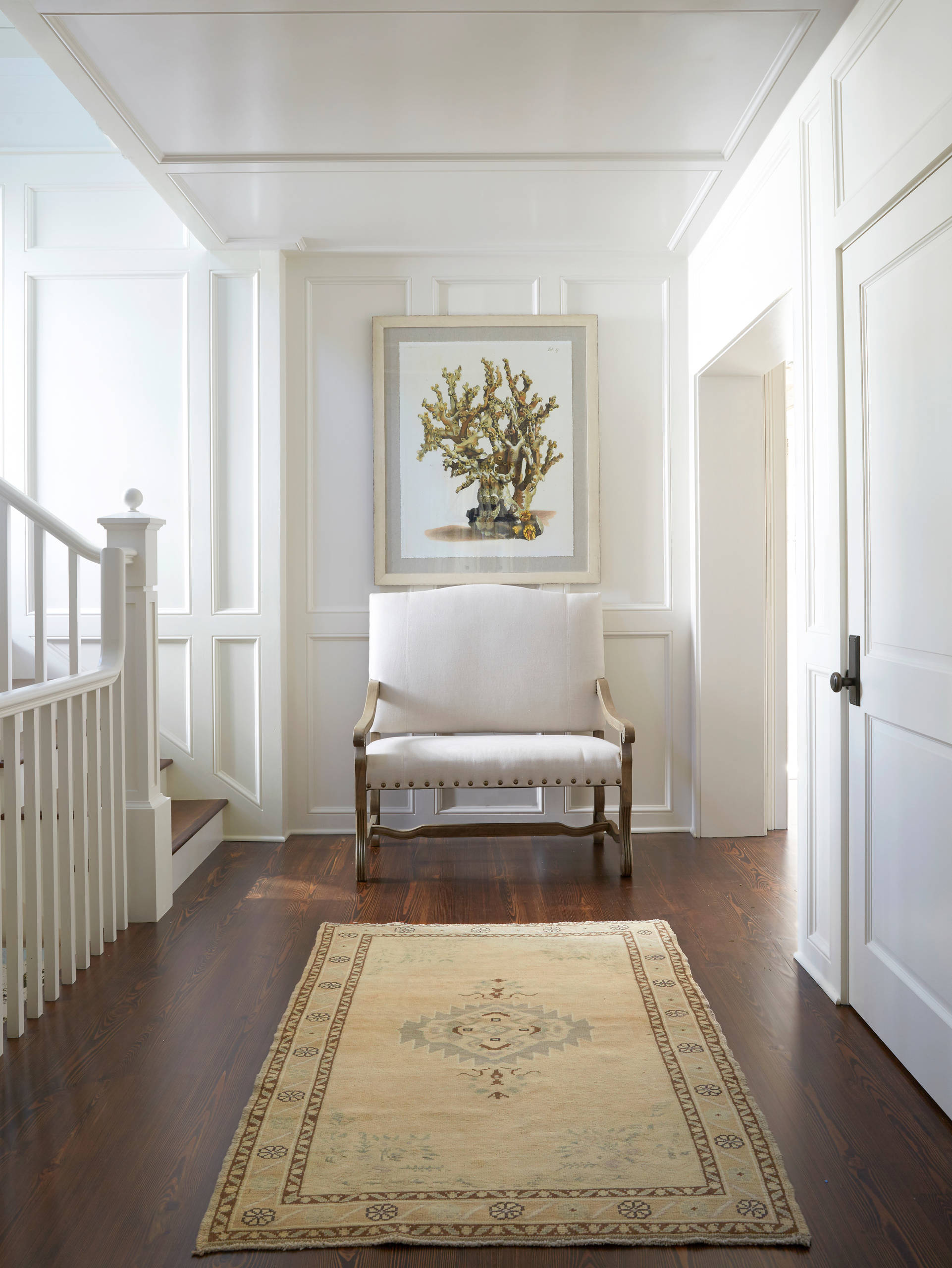 Overall, using the same pale neutral shade for the walls and ceiling gives a welcoming sense of serenity, especially when used throughout the entire home for continuity.