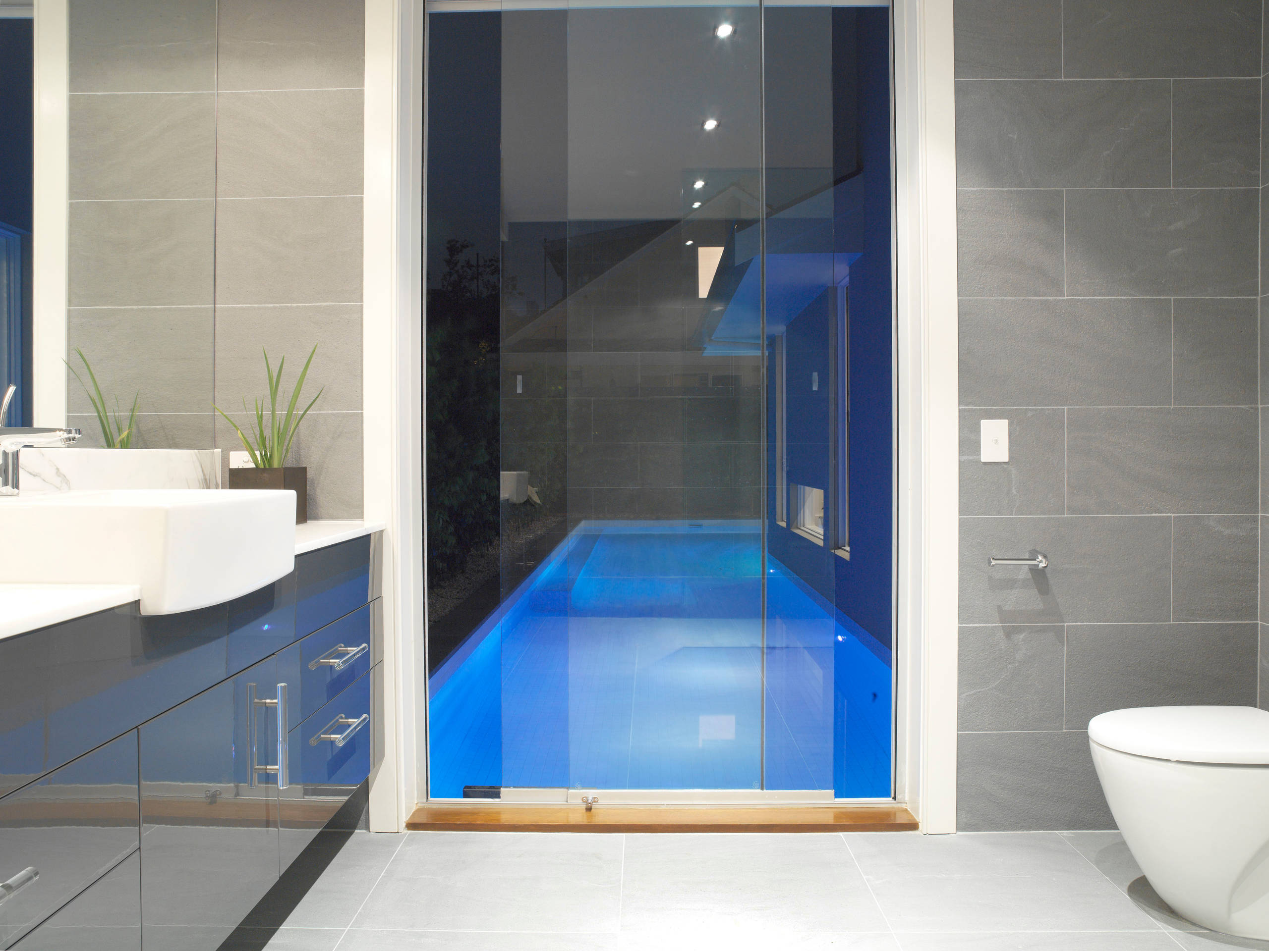 This bathroom is a perfect example of distraction. It instantly draws your eye to another place – the pool! Originally there was a brick wall here, but by looking at what surrounds the bathroom, a new focus was delivered. Both the vanity and the toilet become secondary in importance, so that walking into this bathroom you find yourself thinking, ‘What toilet?’