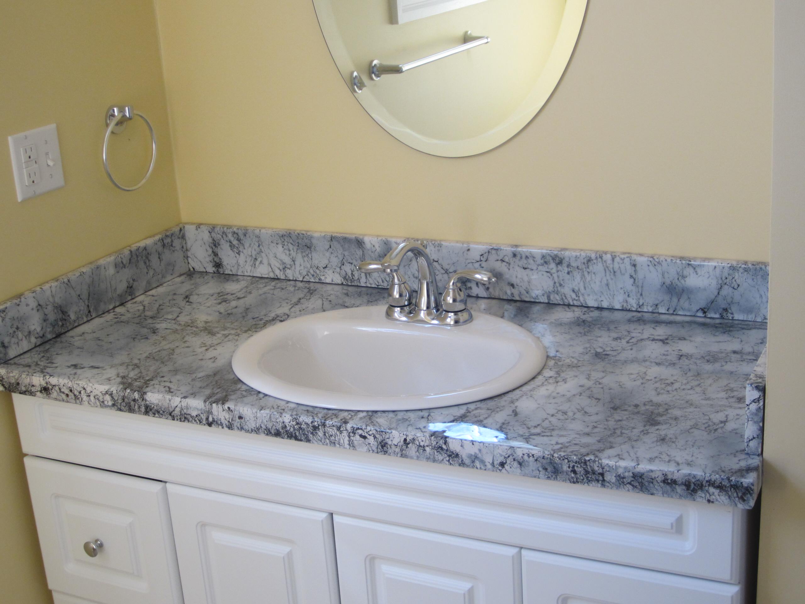 These days, liquid granite options such as the ones from iCoat are a great option for DIYers who want the look of granite for a fraction of the cost and mess. The process is time-consuming because of drying time, so expect to allocate a weekend for it, but the results are worth it. Alternatively, companies like Granite Transformations and Liquid Granite Resurfacing can do it for you.