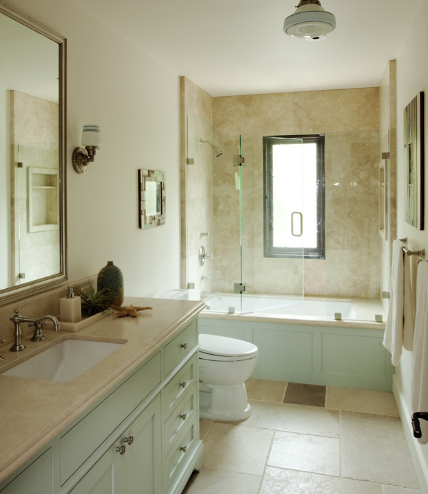 Alternatively, replace a shower curtain with modern frameless or semi-frameless glass to visually open up a small room. There may be no need to get your glass custom-cut – some bathroom stores offer pre-made glass screens with hinged doors that cost under $300.