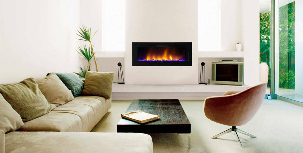 Electric fireplaces are some of the easiest models to install because there is no need to flue the fire. You can switch them on or off with the flick of a remote and some even feature different visual effects, allowing you to customise the display to suit your taste. Like gas, there is no need to refill or refuel electric fireplaces and they pose an excellent option for apartments and high-density living.