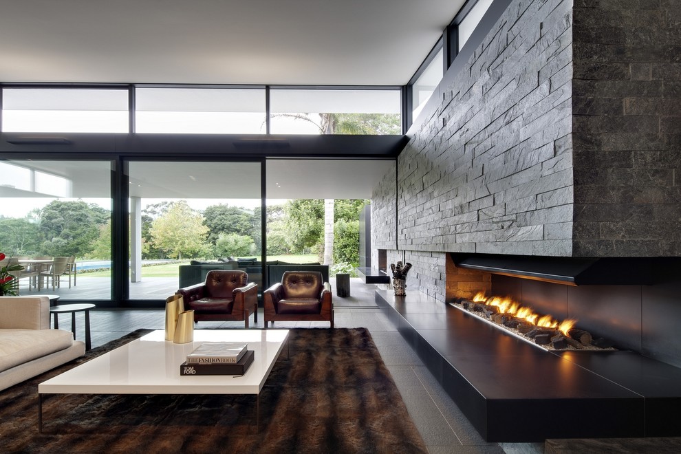 Gone are the days when gas fireplaces lacked the ambience of traditional wood-burning hearths. Many models feature realistic-looking ceramic logs while contemporary designs make a stylish statement with pebbles or river stones, such as the sleek custom-built fireplace above.