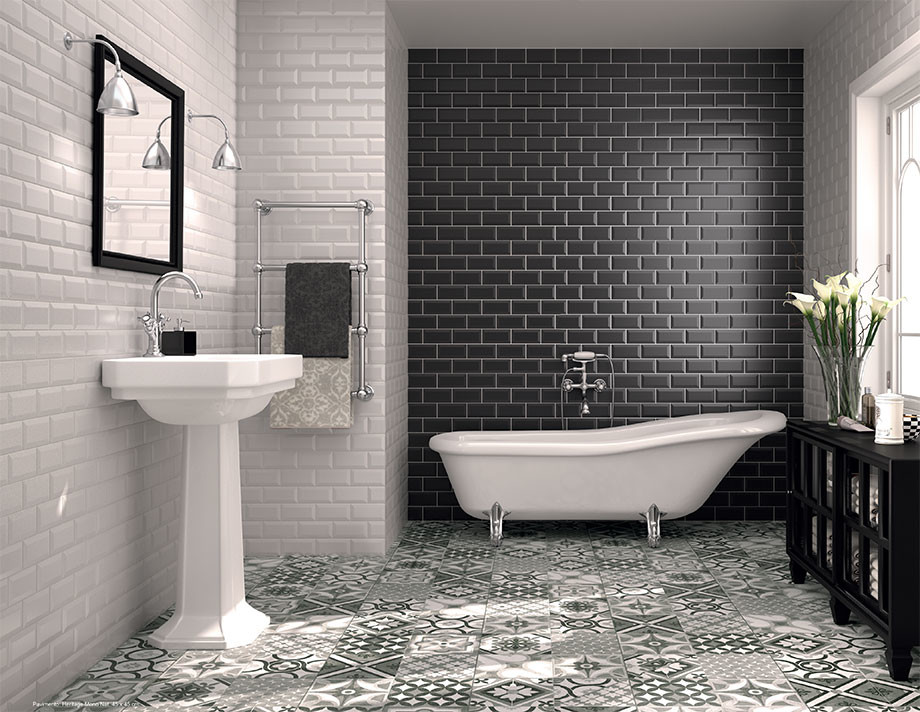 A successful decorating technique when choosing such highly patterned tiles is to stick to a low-key, neutral scheme in the rest of the room, so it doesn’t clash with the decorative flooring. Teaming high-spec, contemporary bathroom fittings with these period-style tiles will create a unique look that’s packed with confidence and character.