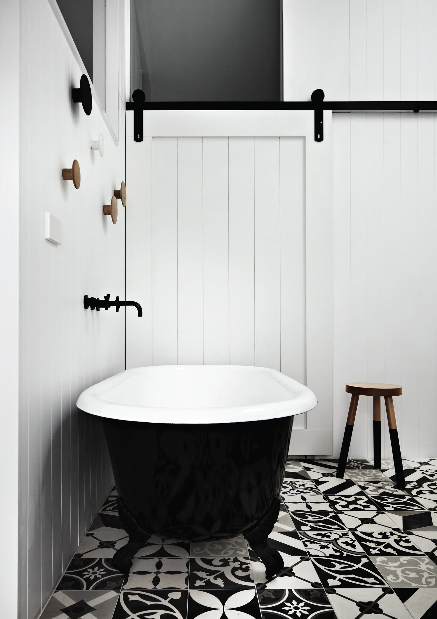 Be bold and introduce grand patterns that echo historic hallways or traditional homes. The effect will be dramatic no matter how big or small the bathroom.
