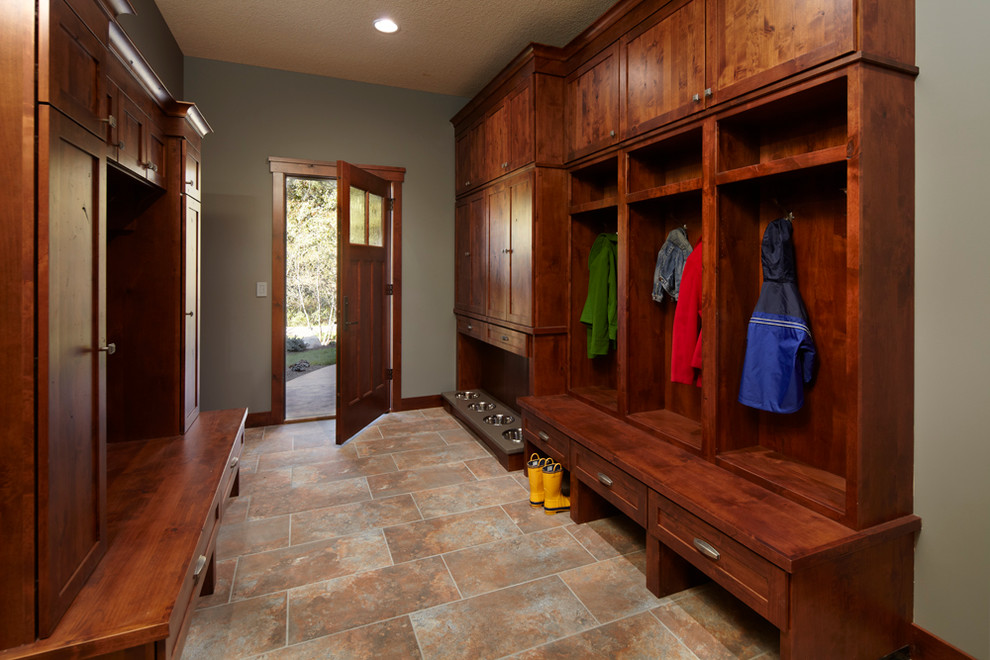 This entryway, by Dreamstructure DesignBuild, is outfitted for everyone — four-legged and two. Due to the recessed and elevated nature of the bowls, you’d be unlikely to step in them.