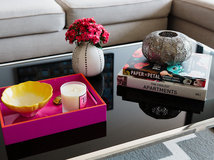Tip: Take inspiration from this coffee table and style yours with a small stack of design books and a feature object in colours that complement your interior.