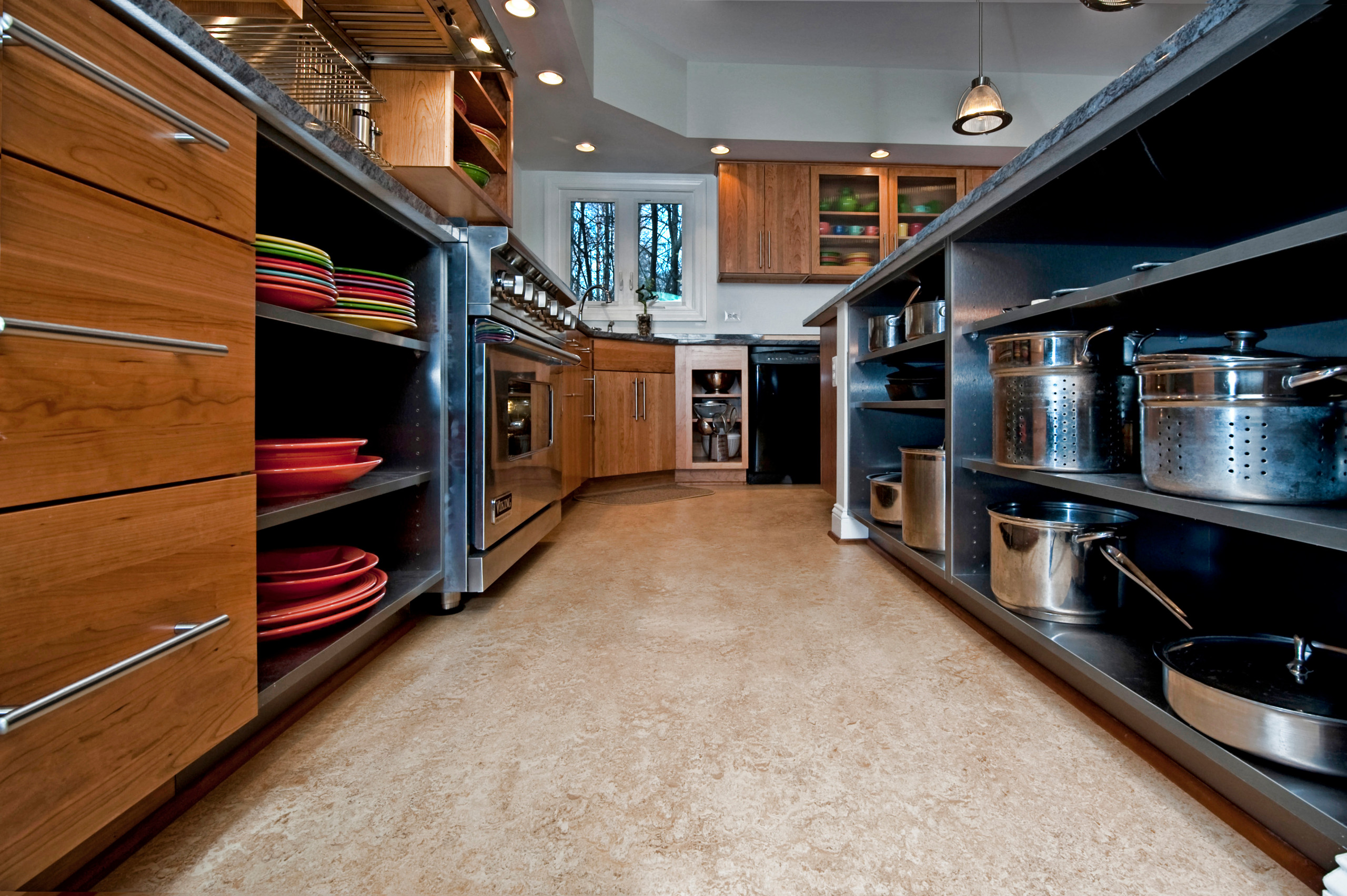 Deep drawers work well for storing cookware, but if you love to cook, be sure to have enough drawers so you can set your pots and pans in one layer – they’ll be easier to see and pull out. A separate area for lids also will keep the drawer neat and easy to use.