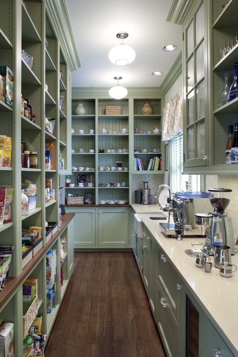 A tucked-away pantry like this one creates a seamless look for an elegant or modern kitchen where good looks depend on streamlined uniformity.