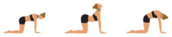 On all fours, stack your hips above your knees and your shoulders above your wrists. Then move your spine with your breath. Hollow your back, stretching your front on your inhale (that’s the ‘cow’ position), and round your back like a cat with your exhale. Do this a few times, and feel free to move intuitively. A similar movement happens when folding forward and lifting halfway.