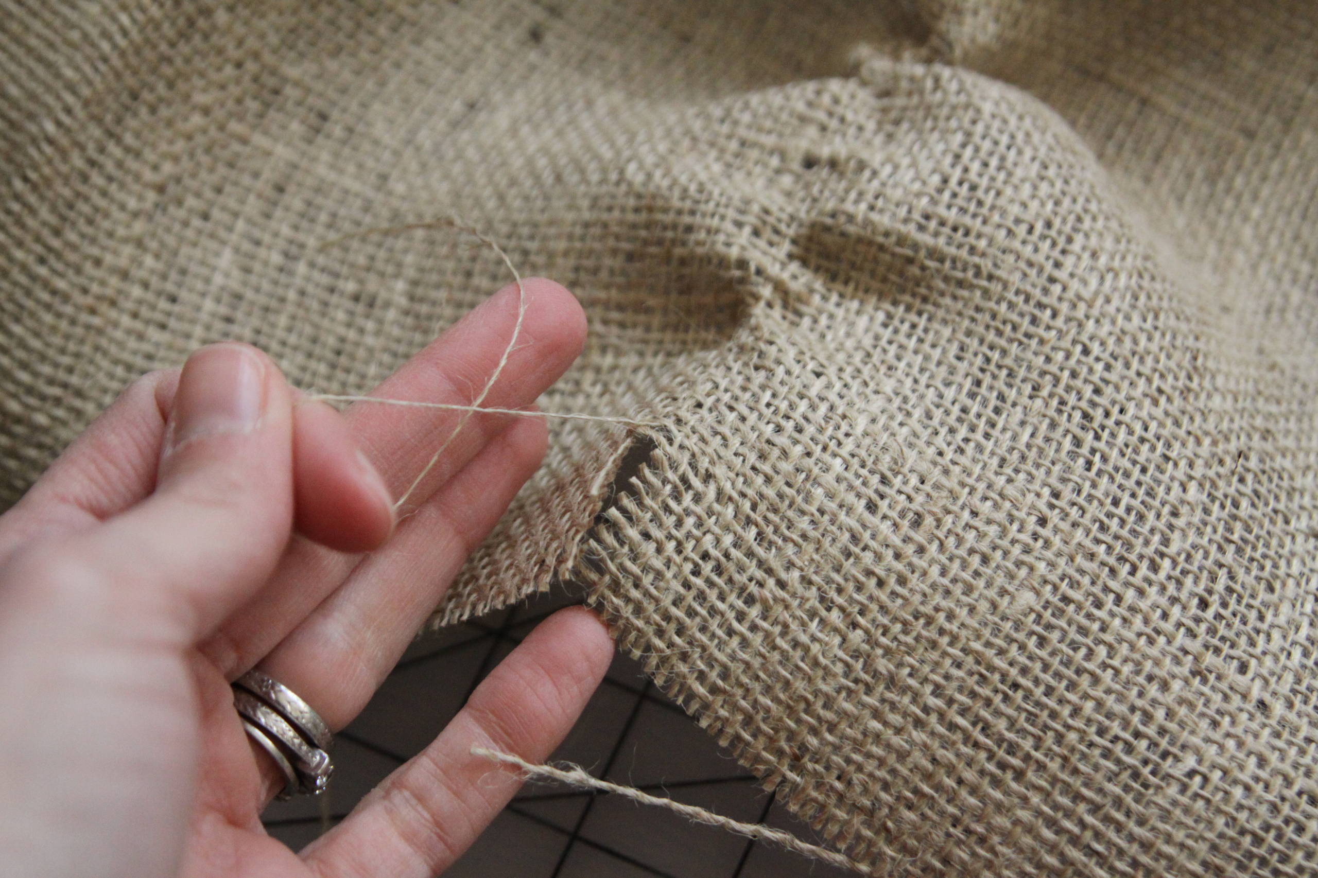 Solution: Hessian is actually one of the easiest fabrics to cut in a straight line; you just have to know the trick. First, measure out the length you need. Locate the end of a thread at the point where you’d like to cut the hessian. Gently pull the thread, slowly working it out of the fabric. Sometimes the thread can snap – if it does, just find the broken piece and continue to gently pull.