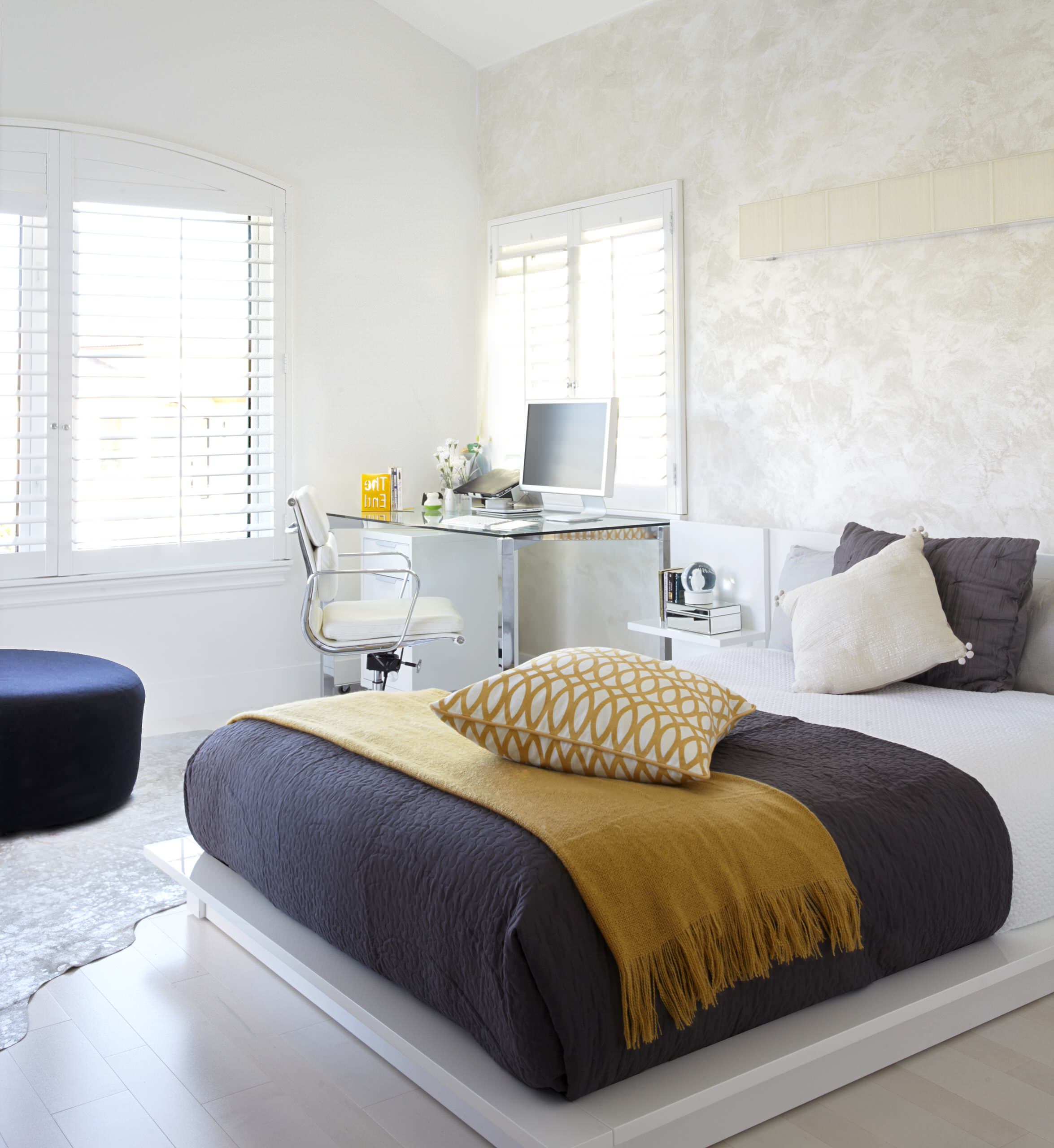 Find a home for any half-read books, magazines and other items littered across your bedside table, as well as anything that doesn’t belong on top of your dresser or tallboy. Dust these surfaces as you go. Change your sheets and, if you’re feeling like a bit of a change, replace your quilt cover with a new one. Finally, vacuum, sweep or mop your floors – and don’t forget to clean under your bed and other furniture in the room.