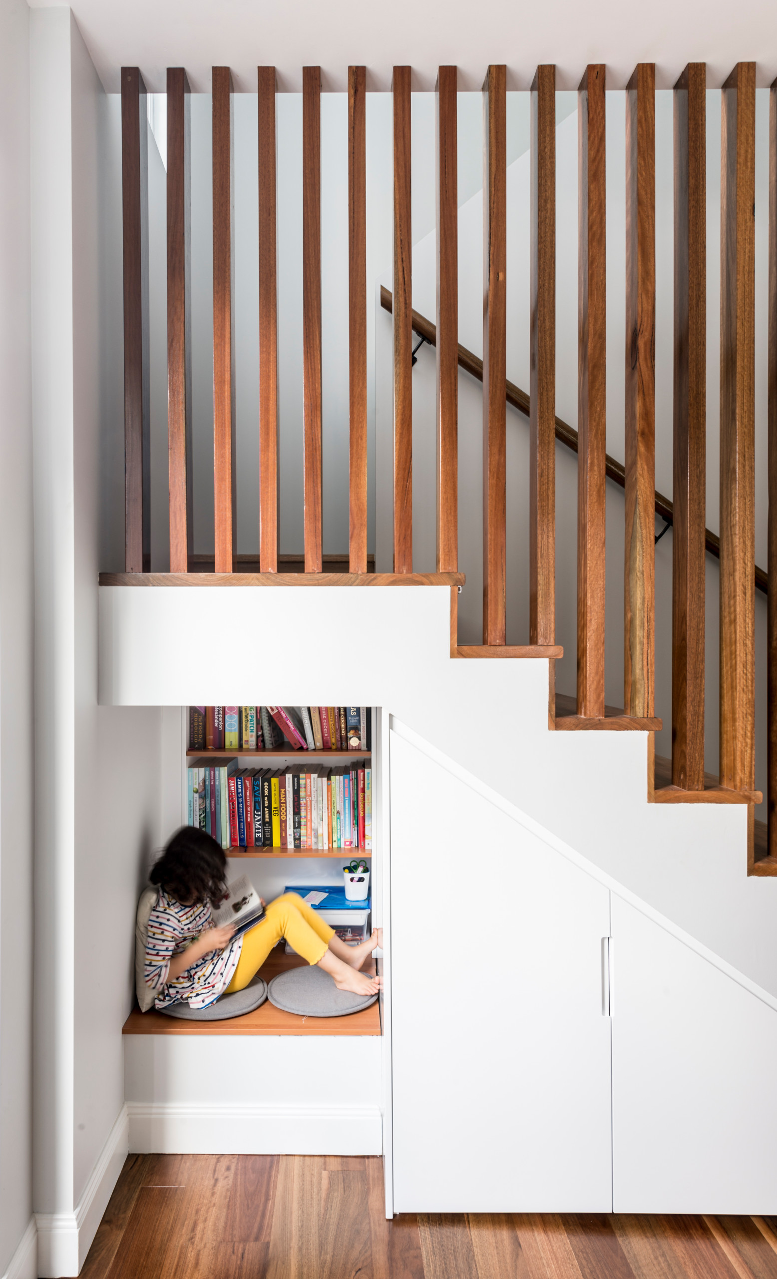 - Areas where it’s possible to integrate a suspended study desk over a void space off a first-floor hallway.