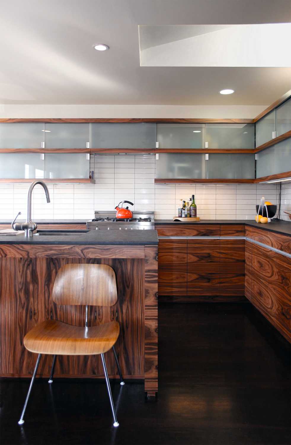 This is the simplest layout. In a stacked pattern, the tiles are aligned to form a basic repeating grid. This results in a modern look that works well with clean shapes and crisp angles, and plays against the organic forms of exotic woods.