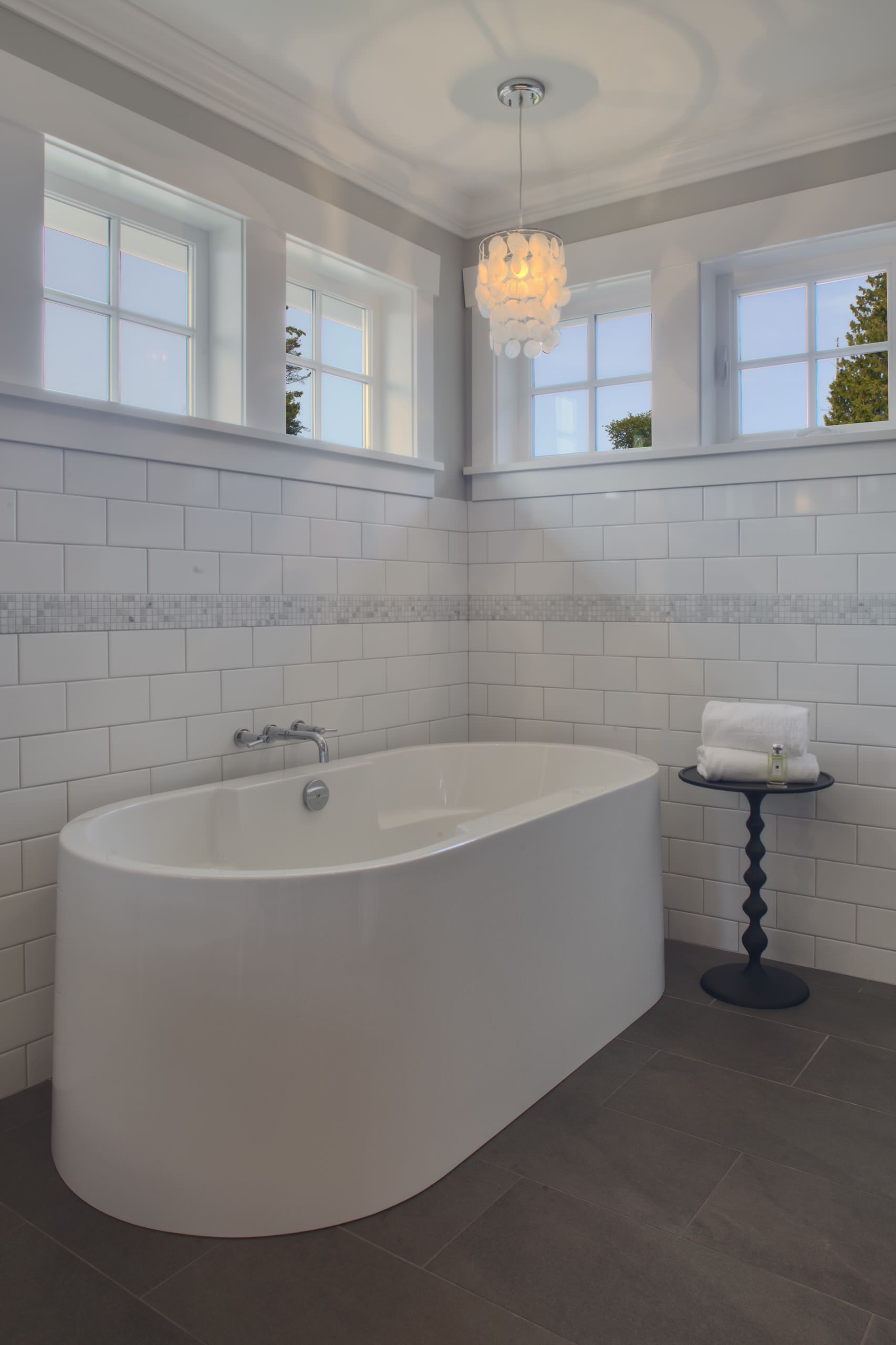 For example, when using a 10-centimetre-high tile with a 2-metre, 5-cm ceiling, using a 5-cm border at any height will leave a remaining even 2 metres for the tiles to fill perfectly. Of course, grout size can affect the way the tiles stack up, so talk to your designer or installer to figure out the exact math in advance, and you can achieve a perfect result with no headaches.
