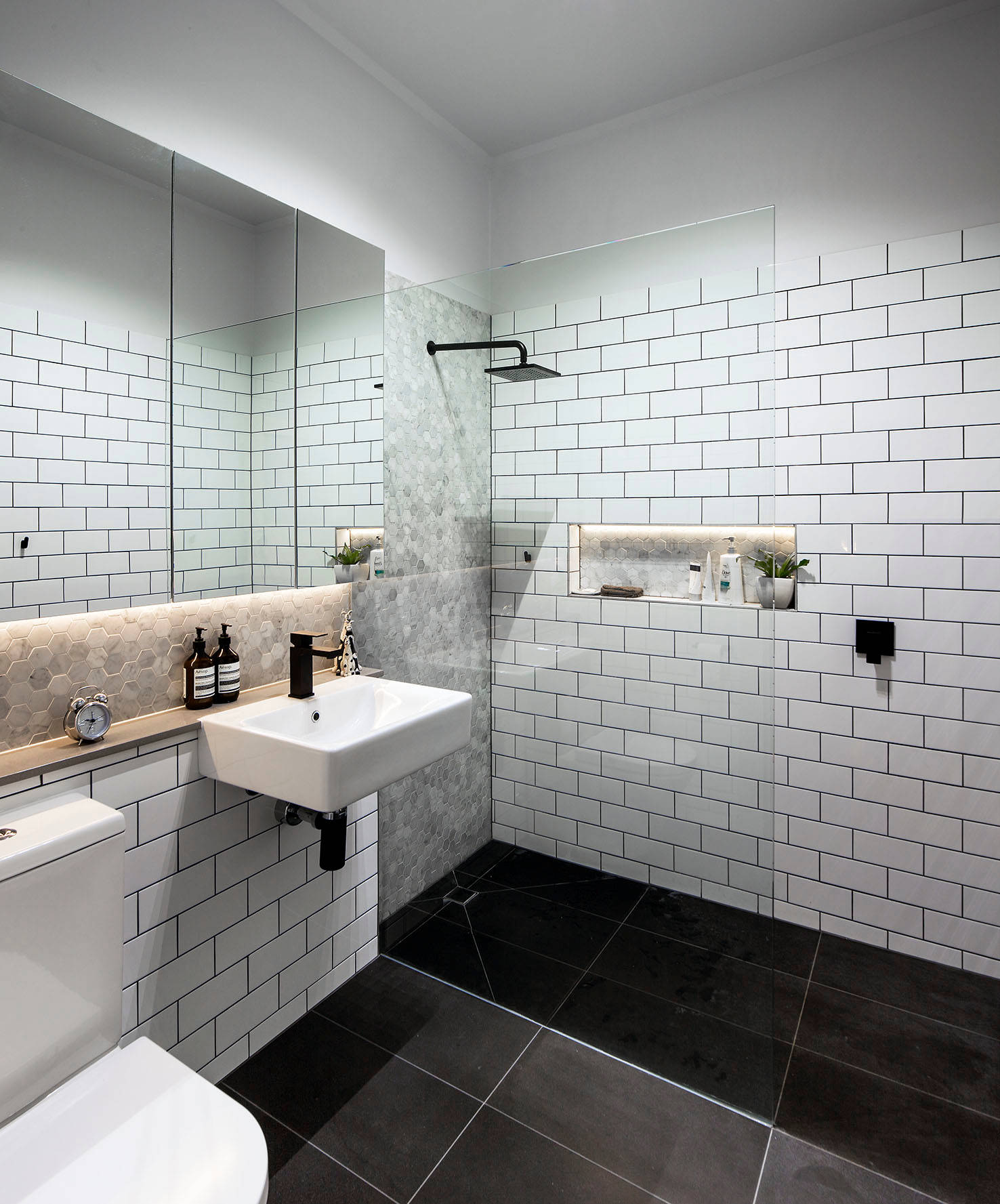 I’m a huge fan of subway tiles, whether they are in the kitchen or bathroom. I suggest using dark grout with white subway tiles to make an eye-catching statement without it being overpowering. Add a sleek black tap to accentuate the dark grout and to tie the whole look together.