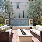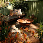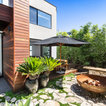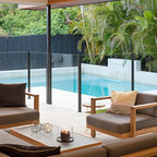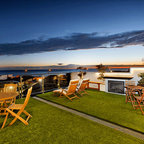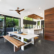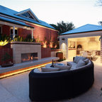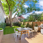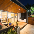 Inspiration for a contemporary backyard patio in Melbourne with an outdoor kitchen and a roof extension. — Houzz