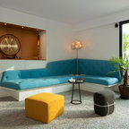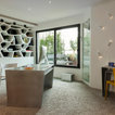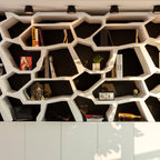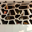 Medioni created the bespoke bookcase with organically shaped cubbyholes in the office area. “It was about making something personal and creative that would link the interior to the outdoors,” the architect explains. “And, of course, to display my client’s books and objects.”