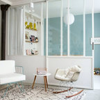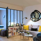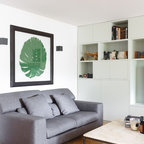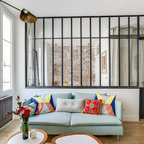 Mid-sized scandinavian formal living room in Paris with white walls, light hardwood floors, no fireplace and no tv. — Houzz