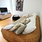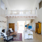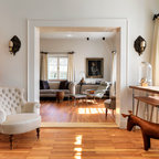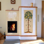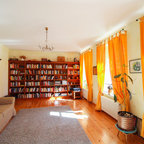 Mid-sized country enclosed living room in Dresden with a music area, beige walls, medium hardwood floors, a standard fireplace and no tv. — Houzz