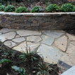 This landscape project on the water at Burraneer in South Sydney features a stone clad cabana for privacy utilising Hotham Drystone cladding.