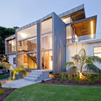 The vast swathes of glazing maximise the benefits of natural light and winter sun throughout the day, with living areas oriented for northeast-to-northwest light. High-performance glazing with low-e coating enhances insulation and energy efficiency.