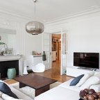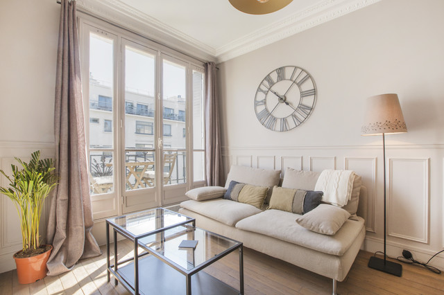 Inspiration for a mid-sized contemporary enclosed living room in Paris with beige walls, medium hardwood floors, no fireplace and no tv. — Houzz