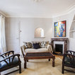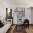 Petit espace classique avec une pointe de modernité, un mélange bien équilibré. La toile colorée et contemporaine lui va bien. Je propose l’œuvre de Syriex Robert Daniel : "peintre et modèle" d'un format un peu plus petit serait très bien intégrée aussi. Michèle