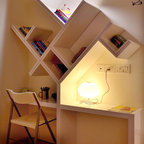 The Library changes appeal from Warm Wood in the den to Contemporary Red in the Study area. It's been designed as a set of carefully balanced Random Niches.