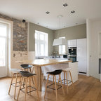 Furniture-style cabinetry and island by Profile Cabinet & Design