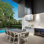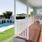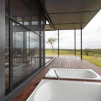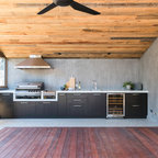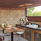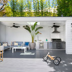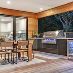 This is an example of a contemporary deck in Melbourne with an outdoor kitchen and a roof extension. — Houzz