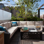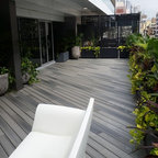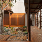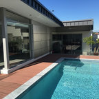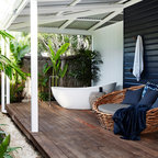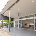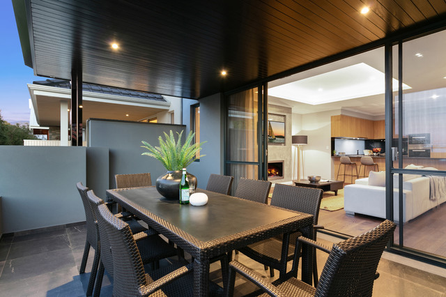 Photo of a contemporary backyard deck in Perth with a roof extension. — Houzz
