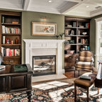 Mid-sized contemporary study room in Paris with brown walls, light hardwood floors, no fireplace and a freestanding desk. — Houzz