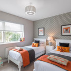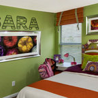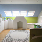 This is an example of a small contemporary kids' room for kids 4-10 years old and boys in Other with green walls. — Houzz