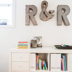 “I wanted to keep the laundry down here, because right now the kids love to be where I am, which means they’ll follow me down, then play down here,” Sterling says. The space also has a second refrigerator for extra storage and snacks for the kids.The baskets to the left are a work in progress; right now each one contains equipment for different activities, like swimming or skating.
