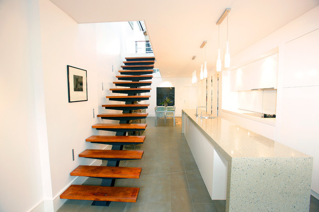 Contemporary wood floating staircase in Sydney with metal risers. — Houzz