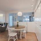 Aquí vemos una vista de la zona de vestidor desde la cama. Los armarios en L rodean un puf y butaca para leer o donde colocar la ropa. La alfombra y la lámpara de pie terminan de convertir la zona de vestidor en un espacio funcional y confortable.