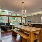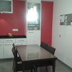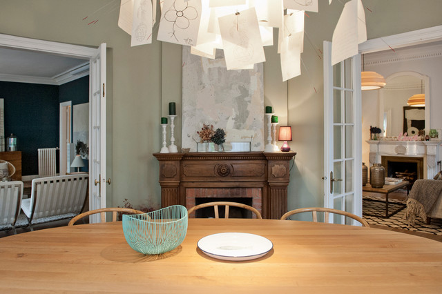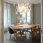 Photo of a mid-sized transitional separate dining room in Barcelona with green walls and medium hardwood floors. — Houzz