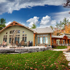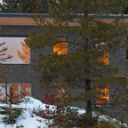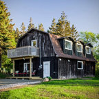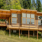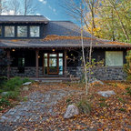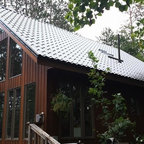 An exterior shot of the 900 sq.ft. Japanesque style studio with a green roof.