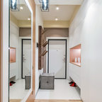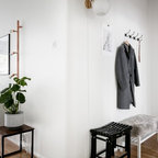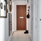 Design ideas for a small scandinavian entryway in Malmo with beige walls, medium hardwood floors and brown floor. — Houzz
