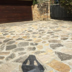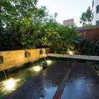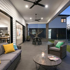 Contemporary patio in Sydney with concrete pavers and a pergola. — Houzz