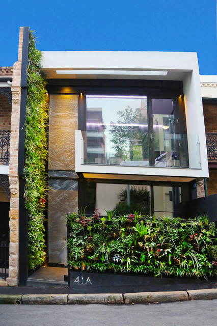Front facade with 8-meter high vertical garden by Code Green Pty Ltd.