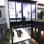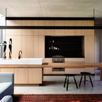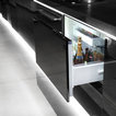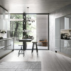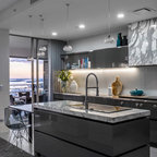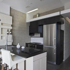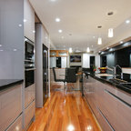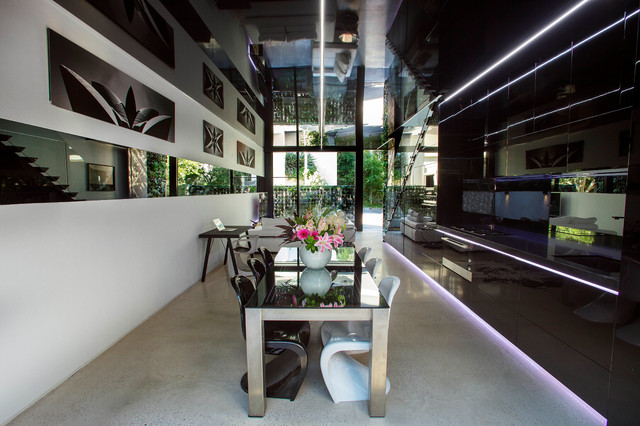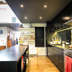 High gloss black kitchen and ceiling.