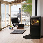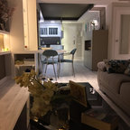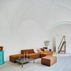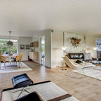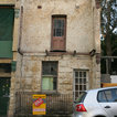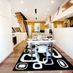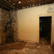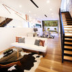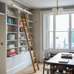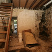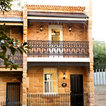 View from new kitchen to view of rear garden where the original left over recycled bricks were used as paving to provide an internal/external link with the staircase face brick wall.