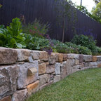 Design ideas for a small traditional backyard garden in Sydney with a retaining wall and natural stone pavers. — Houzz