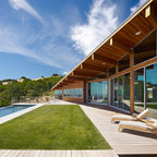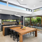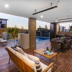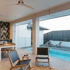 Contemporary backyard patio in Adelaide with an outdoor kitchen and a roof extension. — Houzz