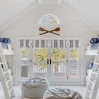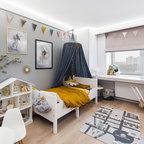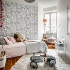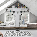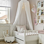 Idea to steal: Ein Baldachin im Kinderzimmer Abgeschaut von… diesem Kinderzimmer im skandinavischen Stil, dessen Bett mit einem Baldachin in Blassrosa zum gemütlichen Rückzugsort wurde und tagsüber ein prima Versteck bietet. Dekoriert mit farblich passender Wimpelkette und halbhoch gestrichenen Wänden wirkt der ansonsten weiße Raum dezent, verbreitet aber genau die richtige Dosis Verspieltheit, die ein Kinderzimmer braucht. Was Sie dafür brauchen: einen Baldachin (Betthimmel) aus weich fließendem Material in einem auf die Wandfarbe abgestimmten Farbton Deckenhaken und gegebenenfalls passende Dübel für die Befestigung des Baldachins an der Zimmerdecke zur Dekoration: Lichterkette oder farblich passende Wimpelkette ein Kinderbett Kosten: circa 150 Euro Schwierigkeitsgrad: leicht https://www.houzz.de/ideabooks/77487164/list/idea-to-steal-ein-baldachin-im-kinderzimmer