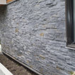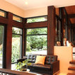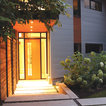 The existing house had a modern geometric massing common in the 70s, which lent itself beautifully to upgraded contemporary forms and finishes. The new additions further the geometric theme by using distinct volumes clad in contrasting materials, and then separating them by a glass atrium entrance. The atrium rises above both masses allowing daylight to filter in to the dramatic entrance from three sides. In the evening the delicate pattern of window mullions cause the atrium to glow like a lantern.