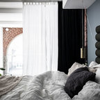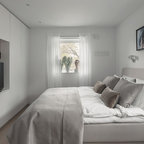 This is an example of a mid-sized scandinavian guest bedroom in Gothenburg with white walls and medium hardwood floors. — Houzz