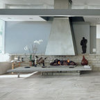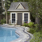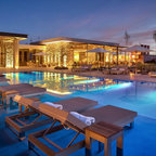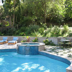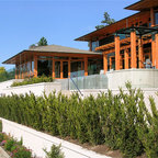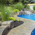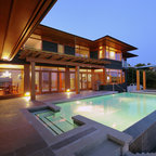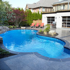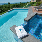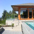This is an example of a large contemporary backyard rectangular infinity pool in Vancouver with tile. — Houzz